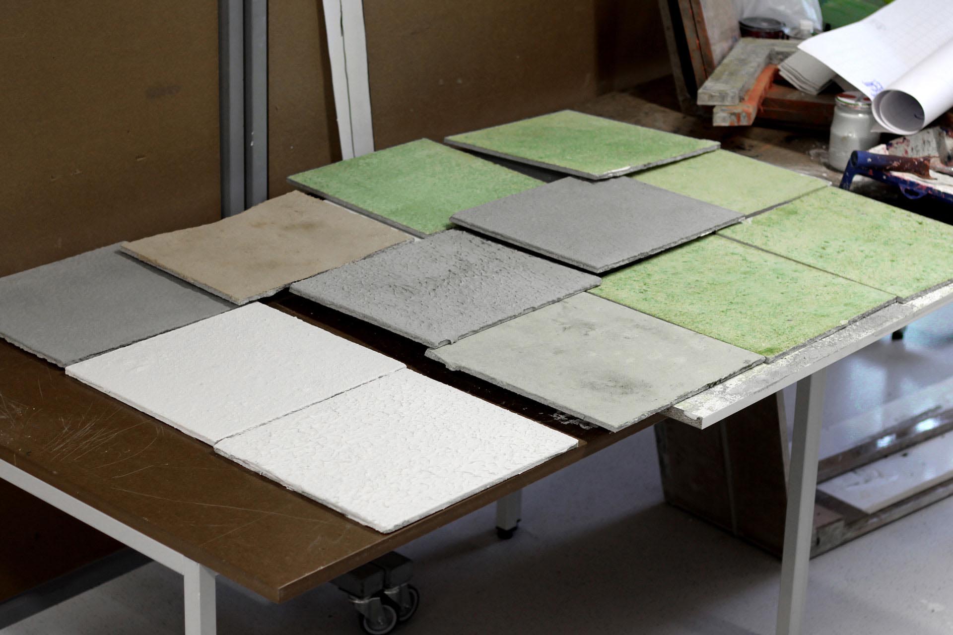 Die Prototypen wurden aus Weißzement entwickelt, mit Pigmenten und variierenden Schichtstärken versehen und so konzipiert, dass eine Integration in bestehende Produktionslinien grundsätzlich möglich gewesen wäre. Meine technische Vorerfahrung ermöglichte eine realistische Einschätzung der industriellen Umsetzbarkeit.