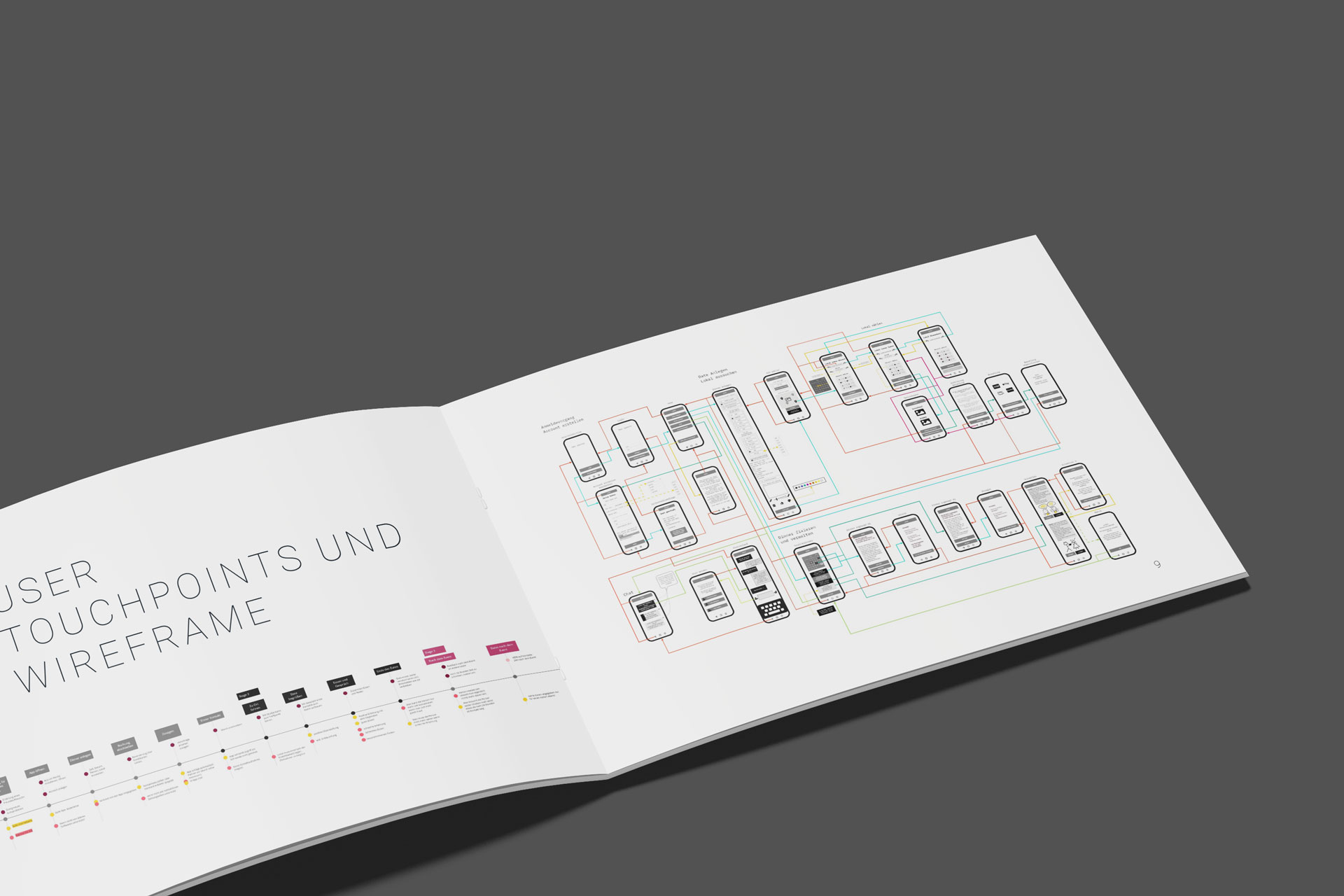 Gestalterisch wurde eine vollständige User Journey, Personas, Wireframes und ein visuelles System entwickelt Das Farbkonzept basiert auf dem Emotion Grid nach Roth & Saiz, mit dunklem Purple als kulinarisch konnotierter Primärfarbe. Der interaktive Prototyp wurde vollständig in Figma umgesetzt. Ergänzend dazu wurde ein konsistenter Style Guide entwickelt, der Farbwelt, Typografie, Interaktionsprinzipien, Tonalität und visuelle Hierarchie systematisch definiert und die konzeptionelle Reduktion auch auf gestalterischer Ebene absichert.